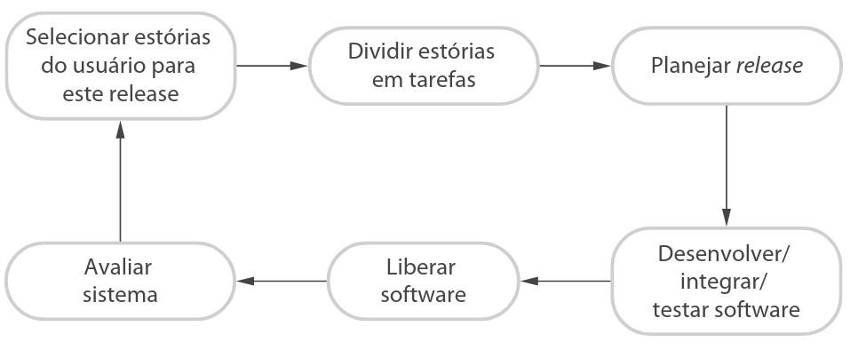 | Seleção | A equipe do projeto e o cliente trabalham juntos para selecionar as funcionalidades que serão desenvolvidas no ciclo atual. |