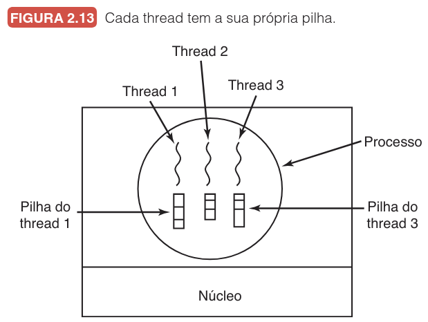 | Gerenciamento de Sinais | Sinais são enviados ao processo. O núcleo deve decidir qual thread específico receberá o sinal ou se todos devem ser notificados simultaneamente. |